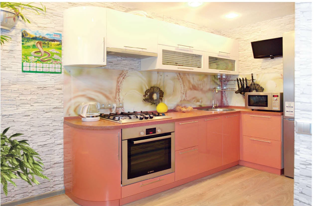 ห้องครัวในโทนสีดังกล่าวจะเหมาะกับผู้ที่ชื่นชอบความนุ่มและเบา บรรยากาศเงียบสงบไพเราะและโรแมนติกมาก สีพีชของผนังสามารถรวมกับหลายทิศทาง