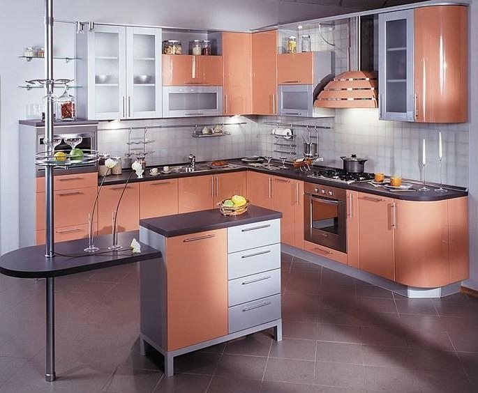 พีชครัวด้วยการเพิ่มสีขาวจะสงบมาก สีขาวจะเพิ่มแสงความบริสุทธิ์และทำให้พื้นที่สว่าง การตกแต่งภายในจะสวยงามและสดใหม่ห้องครัวหรือผนังอาจเป็นสีขาว ทางเลือกของชุดหูฟังในเมืองมอสโกมีขนาดใหญ่มากบางแห่งมีชั้นวางลูกพีชหรือด้ามจับในตัวอยู่แล้ว