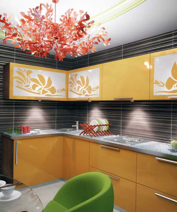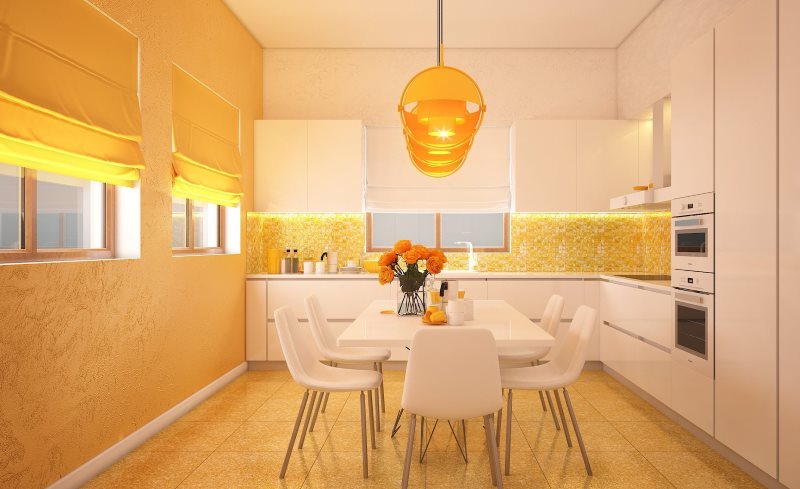 ที่ดีที่สุดคือการกระจายไฟสปอร์ตไลท์ตลอดเพดานและติดตั้งโคมไฟติดผนังหรือโคมไฟที่ติดตั้งอยู่เหนือโซนการปรุงอาหาร เนื่องจากความจริงที่ว่าเราปรุงอาหารห้องครัวควรมีน้ำหนักเบาที่สุด ผ้าม่านควรข้ามรังสีของดวงอาทิตย์มันจะดีกว่าที่จะไม่เลือกผ้าม่านสีเข้มและหนาแน่น