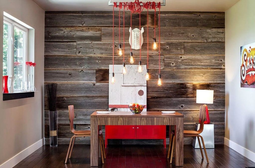 การตกแต่งผนังดั้งเดิมในพื้นที่ทำงานด้วยการใช้องค์ประกอบไม้