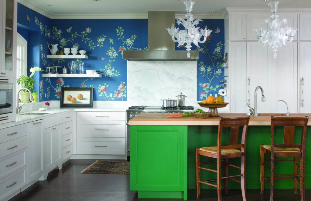 วอลล์เปเปอร์มักจะไม่ได้วางอยู่เหนือผนังห้องครัวทั้งหมด แต่พวกเขาแยกความแตกต่างเพียงพื้นที่รับประทานอาหาร