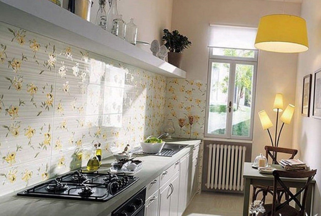 ตัวเลือกที่นิยมมากคือกระเบื้องเซรามิค ข้อได้เปรียบที่สำคัญคือวัสดุนี้ทำความสะอาดได้ง่ายซึ่งมีความสำคัญอย่างยิ่งต่อพื้นที่ครัวเพียงแค่เช็ดพื้นผิวด้วยผ้าชุบน้ำหมาด ๆ กระเบื้องสีอ่อน - สีขาวสีเบจจะสะท้อนแสงของดวงอาทิตย์และทำให้ห้องดูกว้างและสว่างขึ้น คุณสามารถเพิ่มความผาสุกด้วยการตกแต่งธีมง่ายๆ