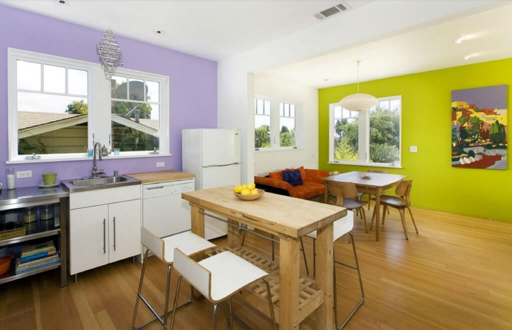 การออกแบบผนังเน้นสีสดใสในห้องครัวสไตล์ผสมผสาน
