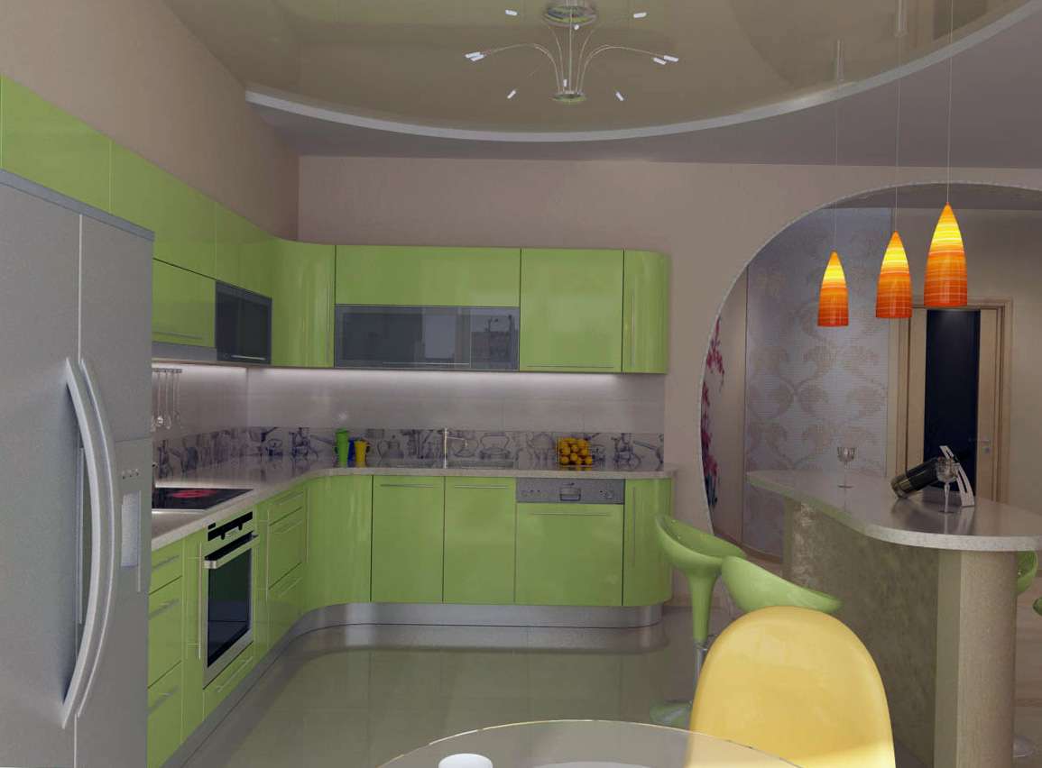 ในห้องที่ออกแบบในลักษณะนี้การตัดสินใจที่ถูกต้องที่สุดคือสีเขียวช่วยในการปรับปรุงกิจกรรมทางจิต แม่บ้านทุกคนจะรู้สึกสะดวกสบายและน่ารื่นรมย์สำหรับครอบครัวและแขกของพวกเขาในห้องครัวสีเขียวที่อบอุ่นเป็นกันเองและกลมกลืนเป็นพิเศษ