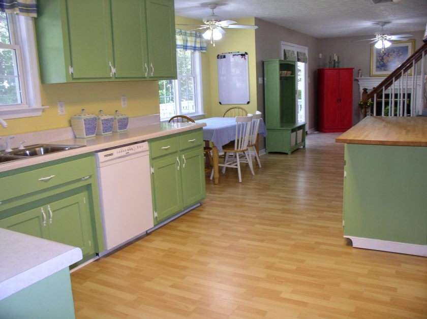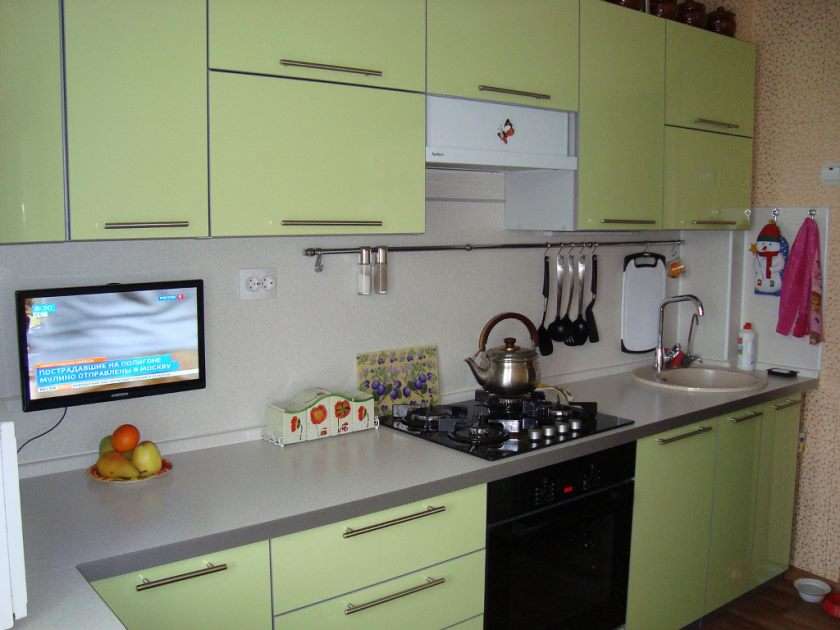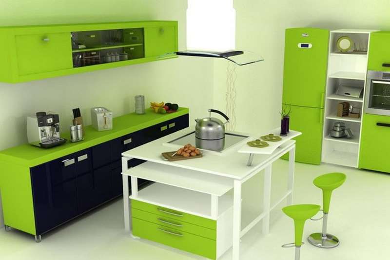 สีเขียวของห้องครัวจะเน้นความร่าเริงในบ้านและอาหารจะเติมความรักและความอบอุ่นในฤดูร้อน