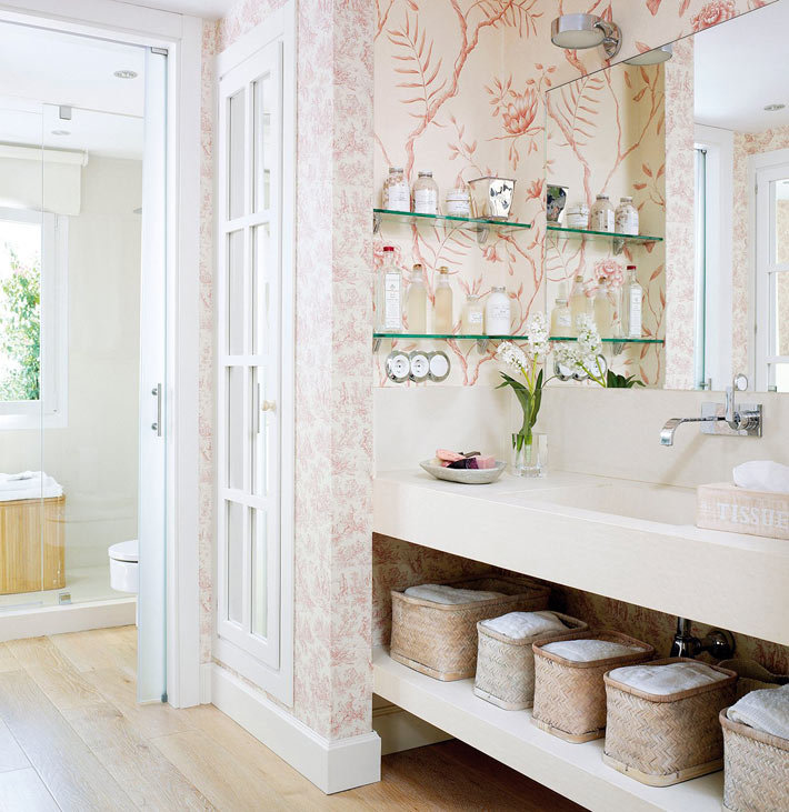 หนึ่งในโซลูชั่นดั้งเดิมสำหรับห้องน้ำคือการใช้ชั้นวางแก้วที่มีภาพต่างๆ มันอาจเป็นรูปแบบที่เรียบง่ายหรือซับซ้อนลวดลายดอกไม้และสัตว์ ถ้าเพียง แต่มีจินตนาการ