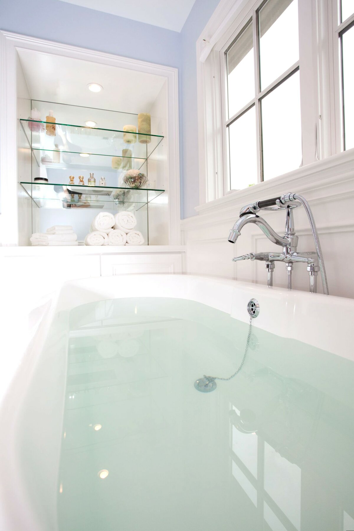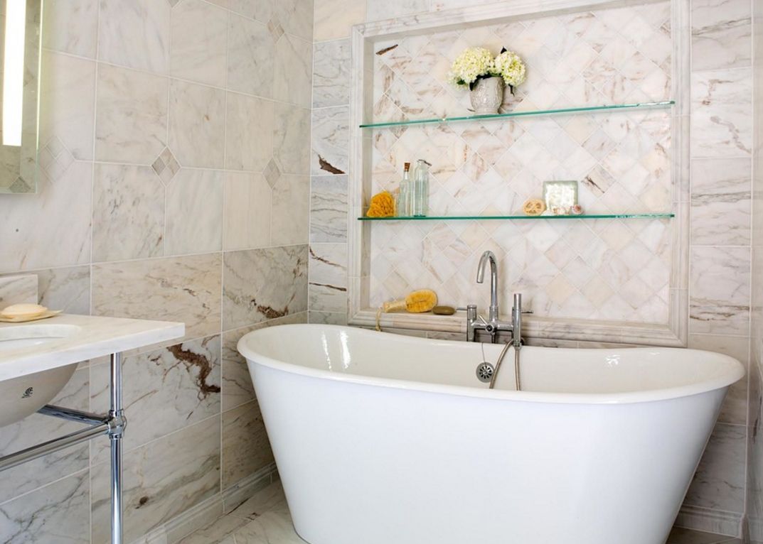 ชั้นวางแบบติดผนังสามารถอยู่ที่ใดก็ได้ในอ่างอาบน้ำและที่ความสูงใด ๆ