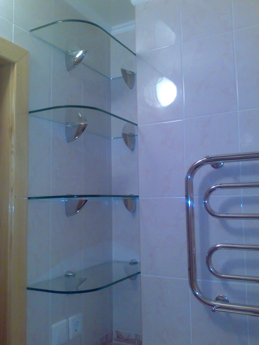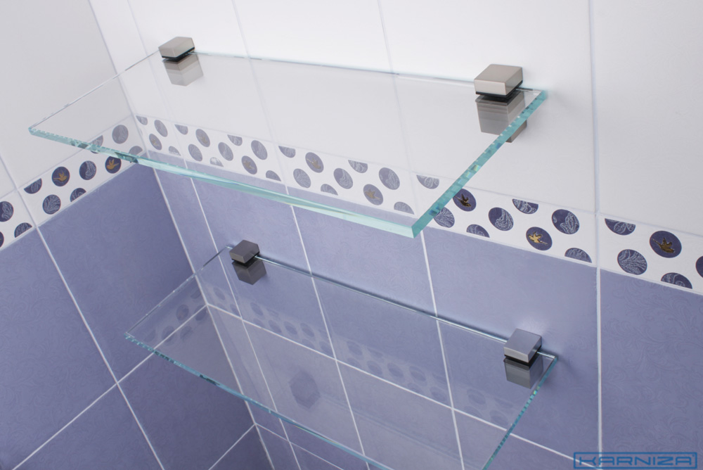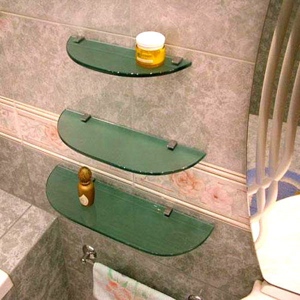 สำหรับห้องน้ำนั้นชั้นวางแก้วที่หลากหลายนั้นสมบูรณ์แบบ: วงรี, ครึ่งวงกลม, สี่เหลี่ยม, สี่เหลี่ยม ฯลฯ ทุกอย่างขึ้นอยู่กับที่ตั้งและวัตถุประสงค์การใช้งาน