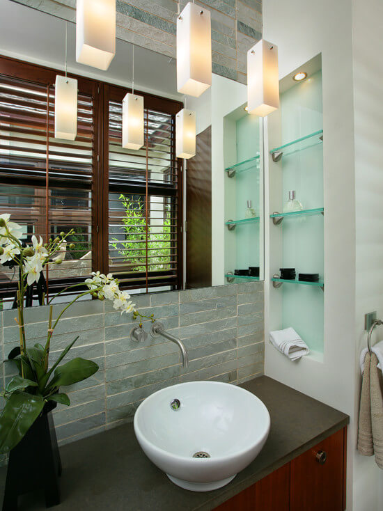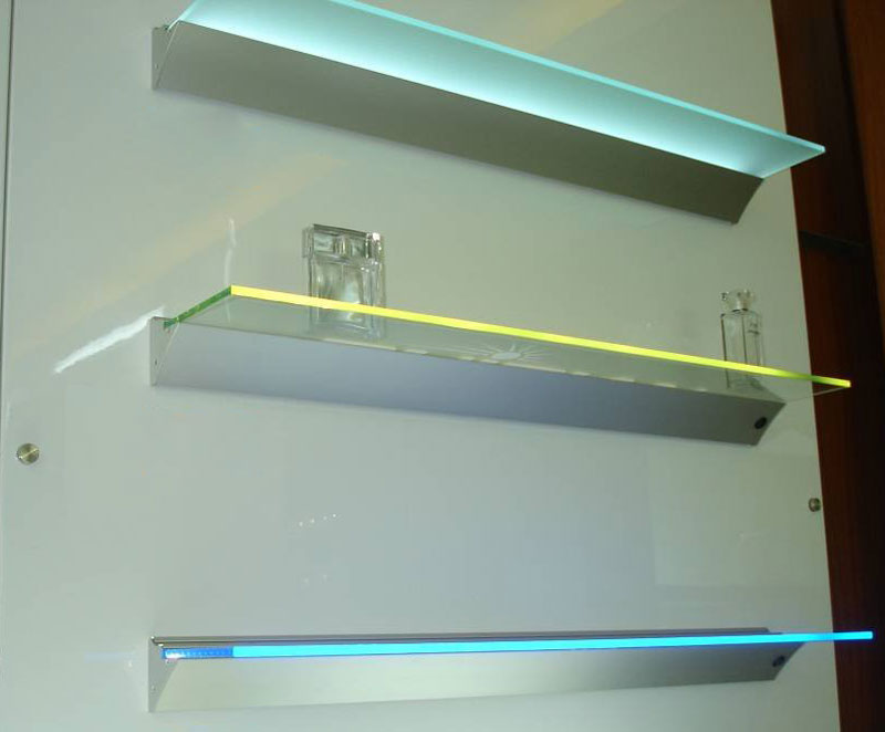 ทุกวันนี้มีการใช้ชั้นวางแก้วพร้อมไฟแบ็คไลท์ในห้องน้ำบ่อยขึ้นเรื่อย ๆ ด้วยความช่วยเหลือของพวกเขาสร้างโซลูชันการออกแบบดั้งเดิม แสงไฟหลายสีดูน่าประทับใจเป็นพิเศษ หากใช้หลอดไฟธรรมดาก่อนหน้านี้หลอดไฟก็จะถูกแทนที่ด้วย LED พวกมันทนทานกว่าและกินไฟน้อยกว่ามาก นอกจากนี้แสงที่ LED มอบให้นั้นดูนุ่มนวลและน่าดึงดูดยิ่งขึ้น