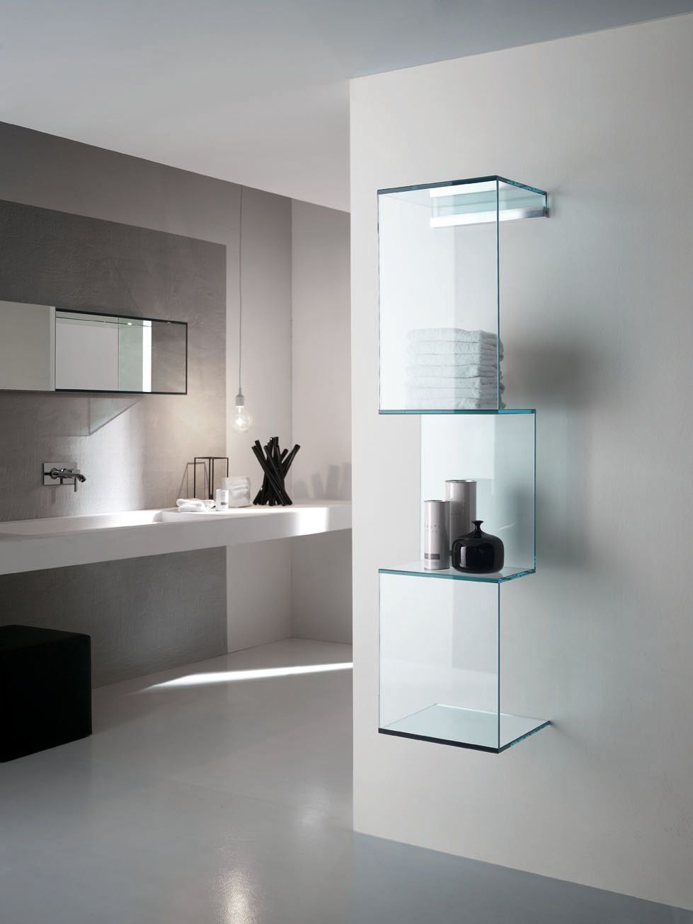 แม้จะมีชั้นวางกระจกจำนวนมากในห้องน้ำ แต่ที่พบมากที่สุดคือผลิตภัณฑ์ที่ทำจากวัสดุโปร่งใสไม่มีสี พวกเขาสร้างบรรยากาศของความสว่างและความโปร่งในขณะที่ยังคงใช้งานได้