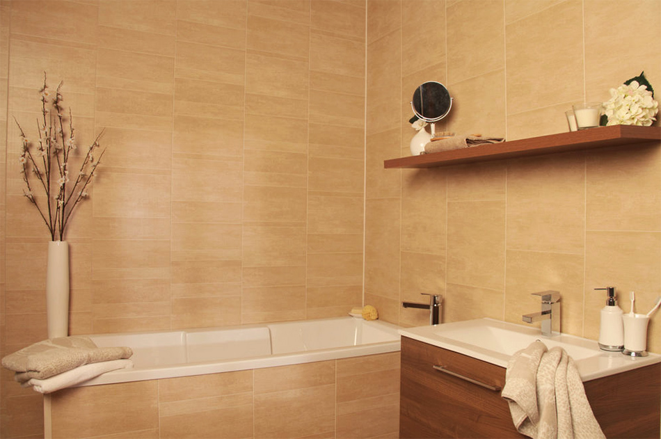- กระเบื้องเซรามิก - อีกครั้งวัสดุนี้มีการใช้กันอย่างแพร่หลายในการตกแต่งห้องน้ำ ข้อดีอีกอย่างที่เห็นได้ชัดคือความปลอดภัยและสุขอนามัย บนกระเบื้องเหล่านี้แบคทีเรียไม่ทวีคูณ