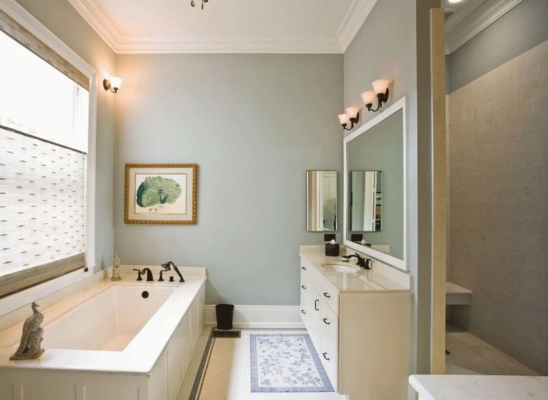 ในห้องน้ำขนาดเล็กเพดานควรจะสว่างและในห้องที่กว้างขวางคุณสามารถทดลองได้