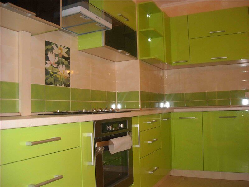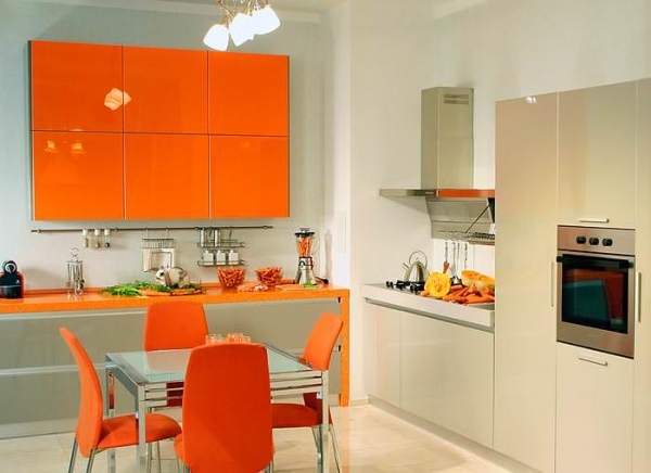 Mutfak alanının etkileyici boyutta olduğu bir odada dekorasyon için hazır bir set kullanın. Kapıları açık olan zemin kabini havalandırma yerine gelecek şekilde yerleştirin.