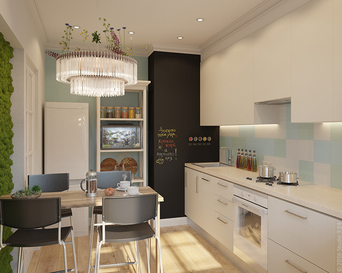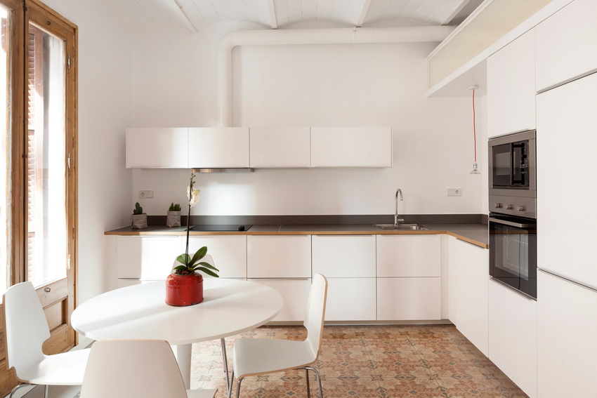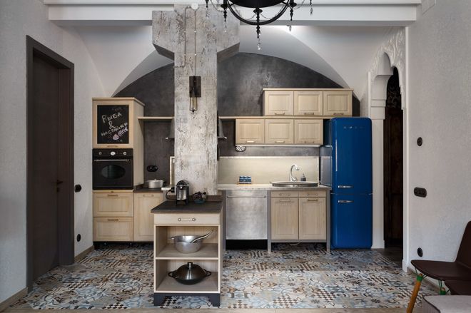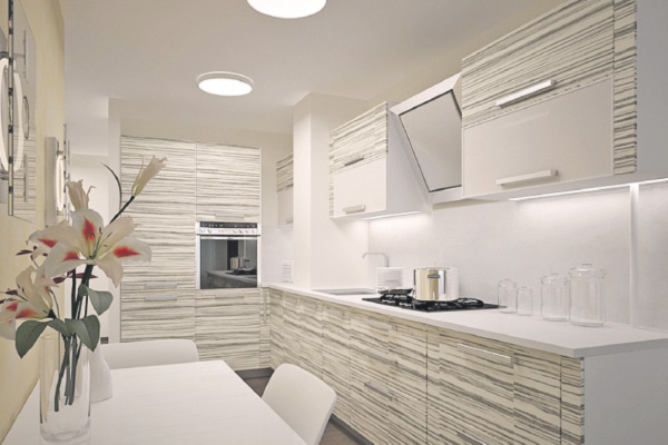 Havalandırma kanallı bir mutfağın tasarımı, kötü planlama sorununa özel bir yaklaşım ve standart dışı bir çözüm gerektirir.