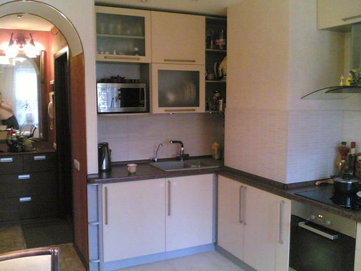 Birçok dairede köşede çıkıntılı bir mutfak vardır. Gizlemek için buraya güçlü bir başlık ile donatılmış bir ocak yerleştirin.