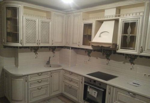 Geniş bir mutfakta, köşe çıkıntı yapan bir eleman olduğunda, G harfi ile yapılmış bir mobilya seti elde etme seçeneği yardımcı olacaktır Hafif bir çıkıntılı destekle, mutfak setinin üzerinde bulunan kutu kılık değiştirecektir.
