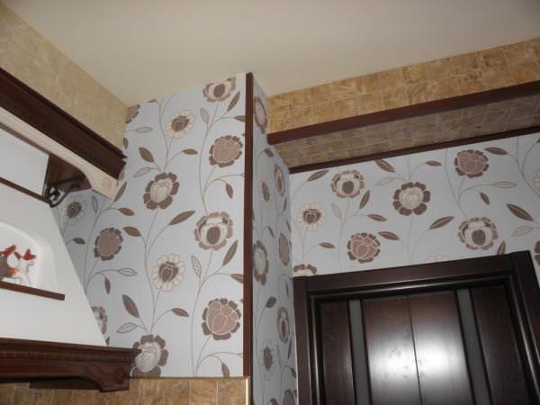 Çıkıntıdaki çeşitli duvar kağıdı türlerinin kombinasyonu, aydınlatma armatürlerinin doğru kurulumu, mutfakta bir sanat nesnesi yaratmaya yardımcı olacaktır.