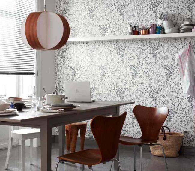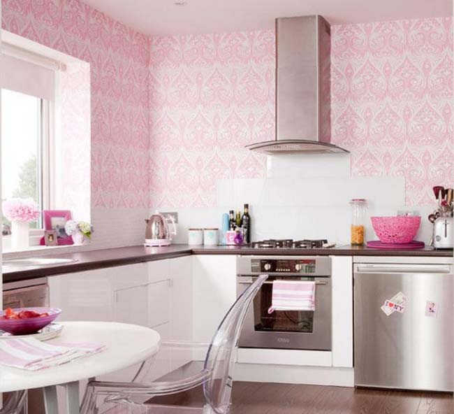 Duvar kağıdı deseni mutlaka küçük mutfağınızın oranlarıyla orantılı olmalıdır.