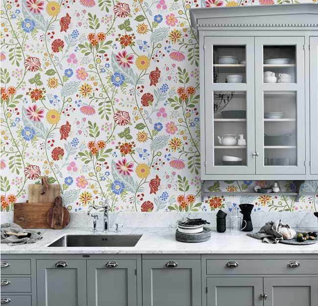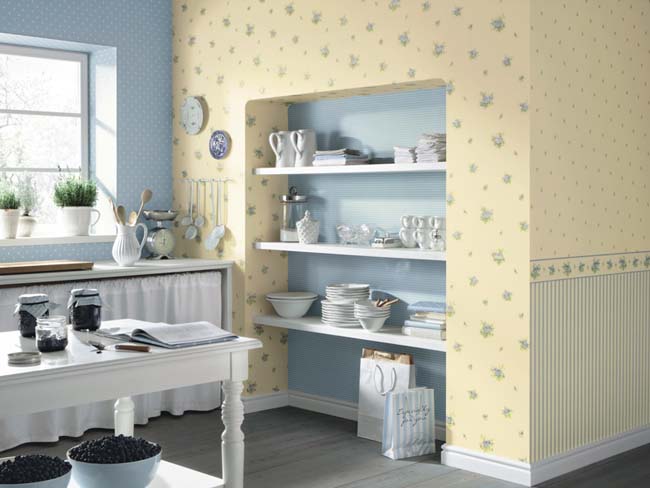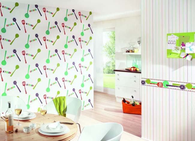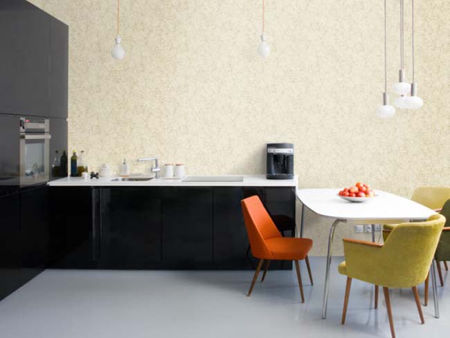 Herhangi bir boyuttaki mutfaklar için sadece yoğun yıkanabilir duvar kağıtları seçin (vinil, dokunmamış, fiberglaslı).