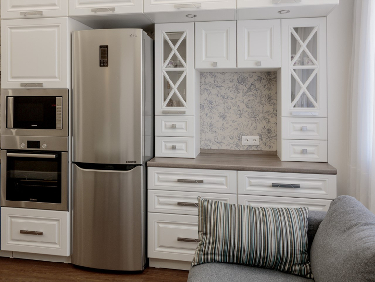 Önemli bir kural: küçük bir mutfağın tasarımında ne kadar az renk varsa, iç mekanı o kadar uyumludur.