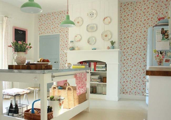 Duvar kağıdı ile mutfak duvarlarının düzensizliklerini düzeltebilir ve alanı biraz görsel olarak artırabilirsiniz.
