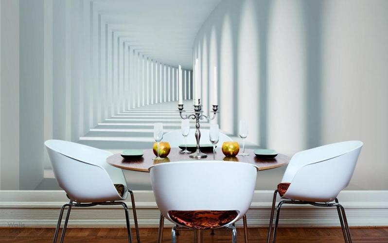 - Bir duvarı derin çizimleri veya manzaraları olan duvar resimleri ile yapıştırın. Bununla birlikte, iyi kalitede olmaları önemlidir, aksi takdirde etki bulanık olacaktır.