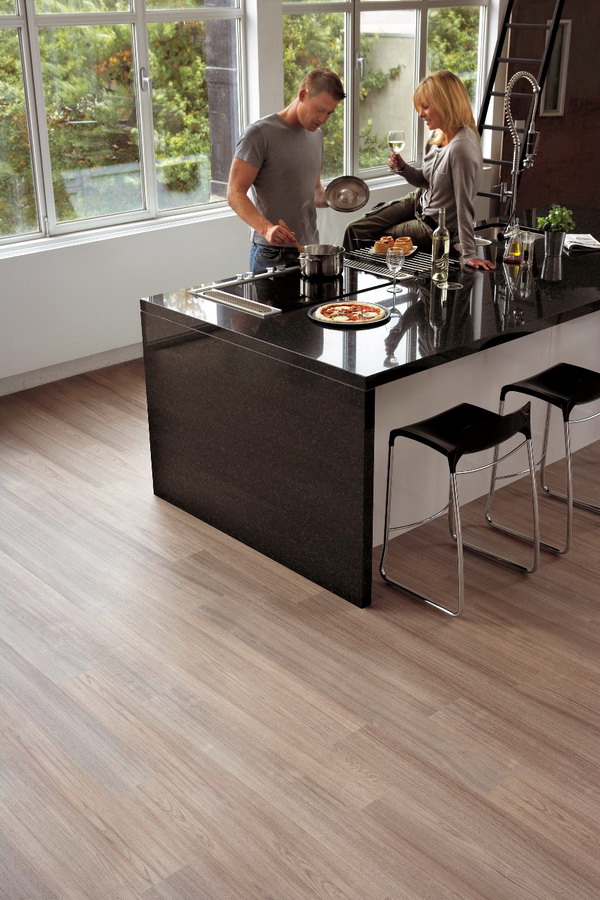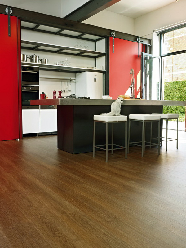 - Odadaki büyük sıcaklık farklılıklarına dayanma yeteneği.Yine, mutfağın yemek hazırladığı ve sıcak buhar puflarının sürekli olarak hava kütlelerine atıldığı ve daha sonra sıcaklıkta keskin bir düşüş olduğu için, kötü yapılmış bir zemin özelliklerini kaybedebilir. Bu yüzden seçim yaparken aşırı sıcaklıklara karşı direnç gibi bir parametreye büyük dikkat etmeye değer. Ayrıca, dairenize modern yerden ısıtma teknolojisini kurmak istiyorsanız bu parametre çok yararlı olabilir.