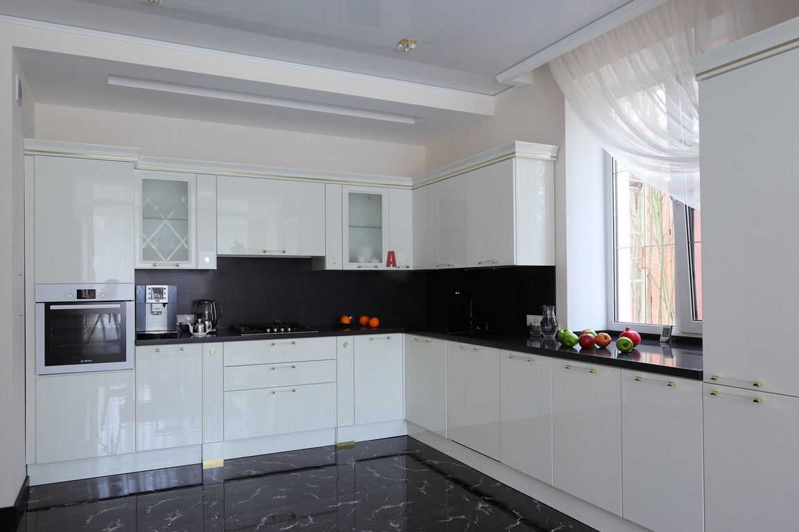 - Klasik tarz son birkaç on yılda pek değişmedi. Hepsi çok yönlülüğü, erişilebilirliği, güzelliği nedeniyle. Böyle bir stili tamamen reddedecek bir kişi olması muhtemel değildir. Klasikler kısıtlanmış, işlevseldir, ancak aynı zamanda mutfak sahiplerinin zenginlik ve iyi tat hissi yaratırlar. Lambalar, perdeler ve diğer aksesuarlar çoğunlukla altın, bakır veya gümüş kaplama ile kaplıdır. Ancak klasik iç mekandaki mobilyalar doğal ahşaptan yapılmıştır, bu yüzden zemini bitirmek için malzeme ile bunu yenmek güzel olurdu.