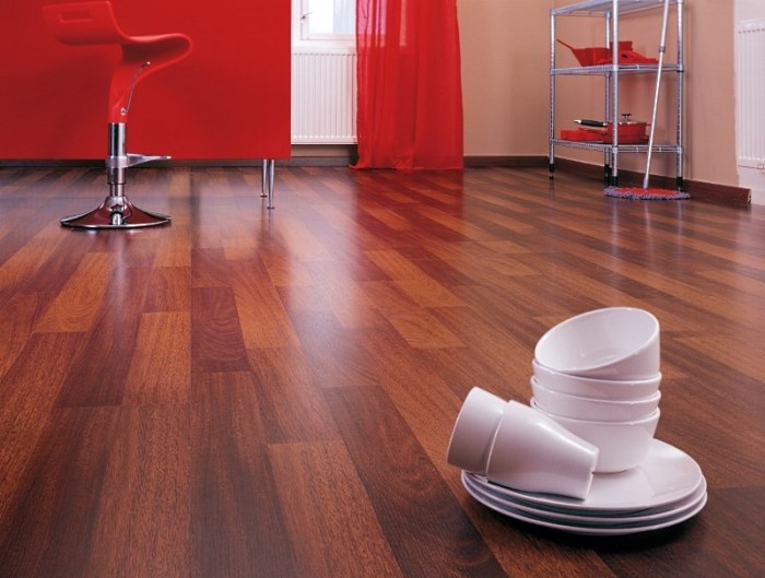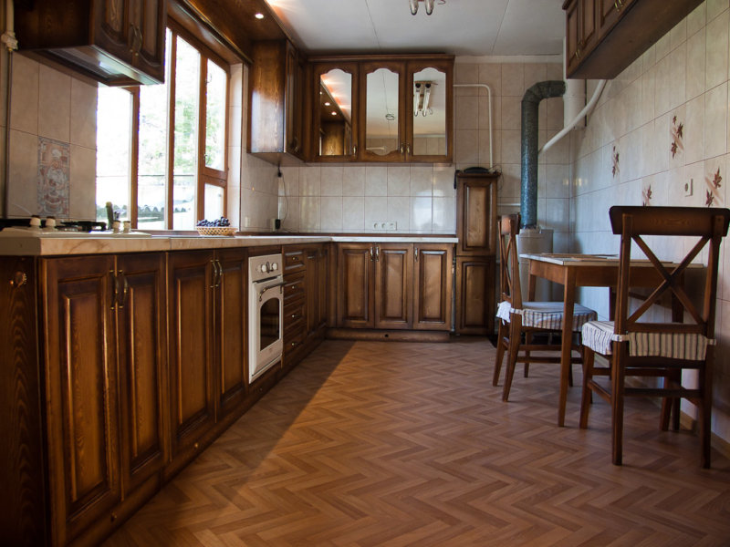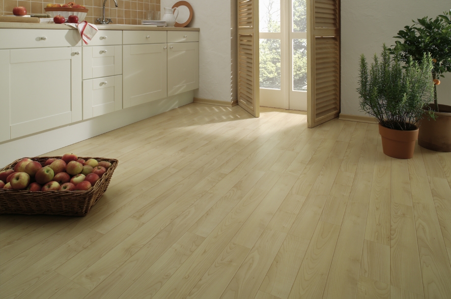 Düzenli yürüyüş yüklerine, bulaşıklara sahip ağır dolapların ve buzdolabının yanı sıra, zemin sabit sıcaklığa ve yüksek neme maruz kalır.