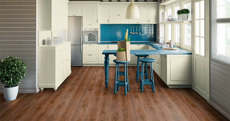 Mutfaklar için en iyi seçenek, mikro kabartma yüzeyli ve kaymaz özellikli 31-32 işaretli neme dayanıklı yarı ticari bir kaplamadır.