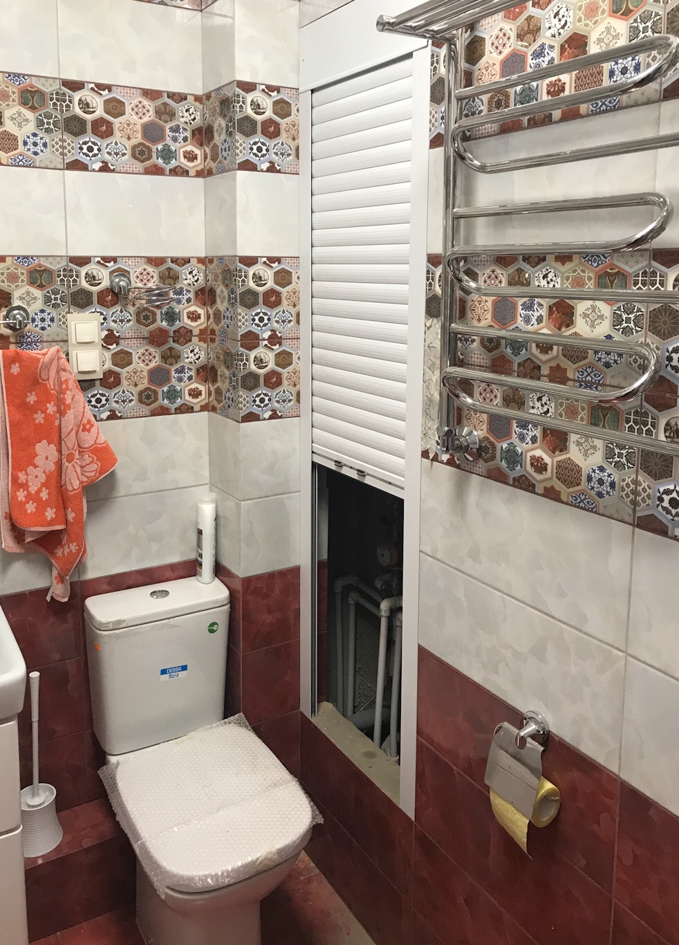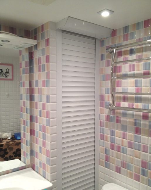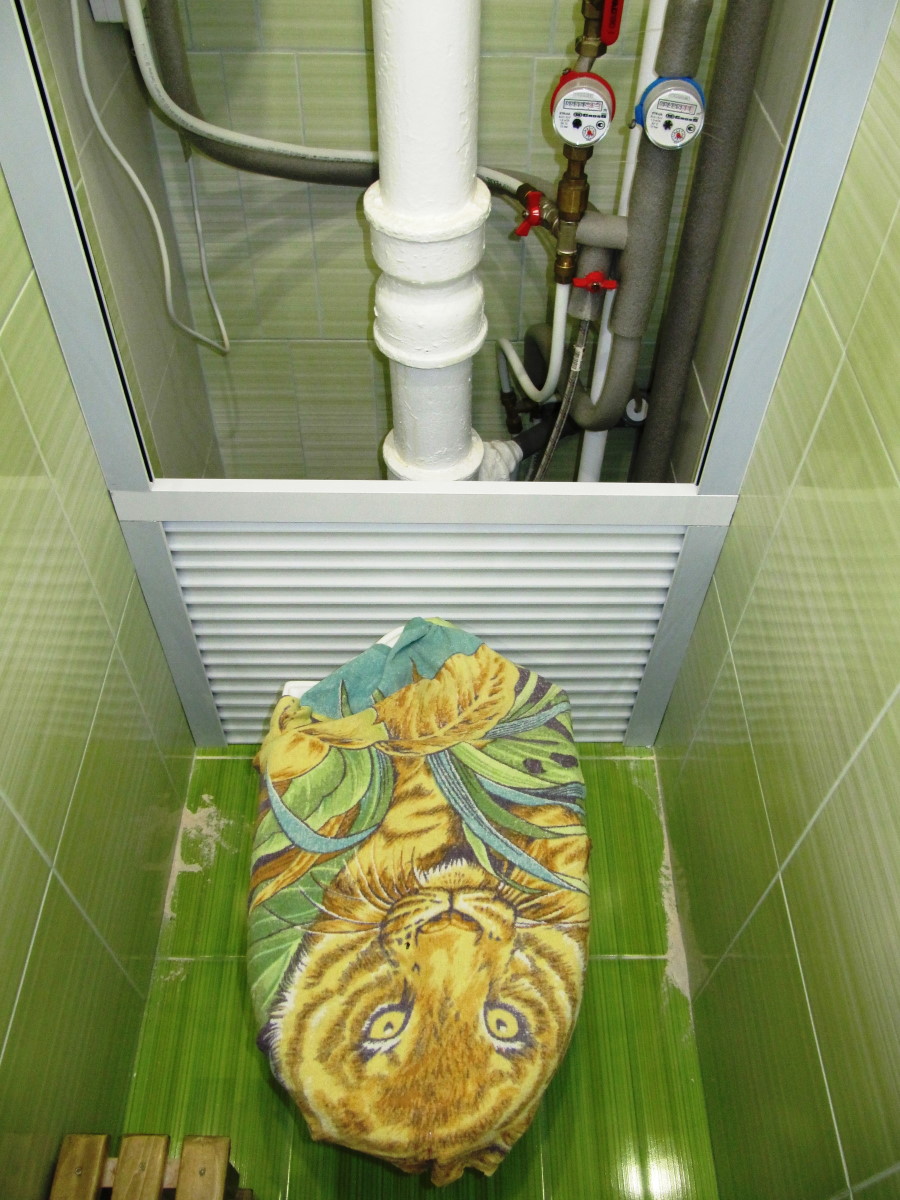 Fotoğraftaki örnekler, banyoda borunun panjurlarının nasıl kapatılacağı, makalenin sonuna yerleştirilir.