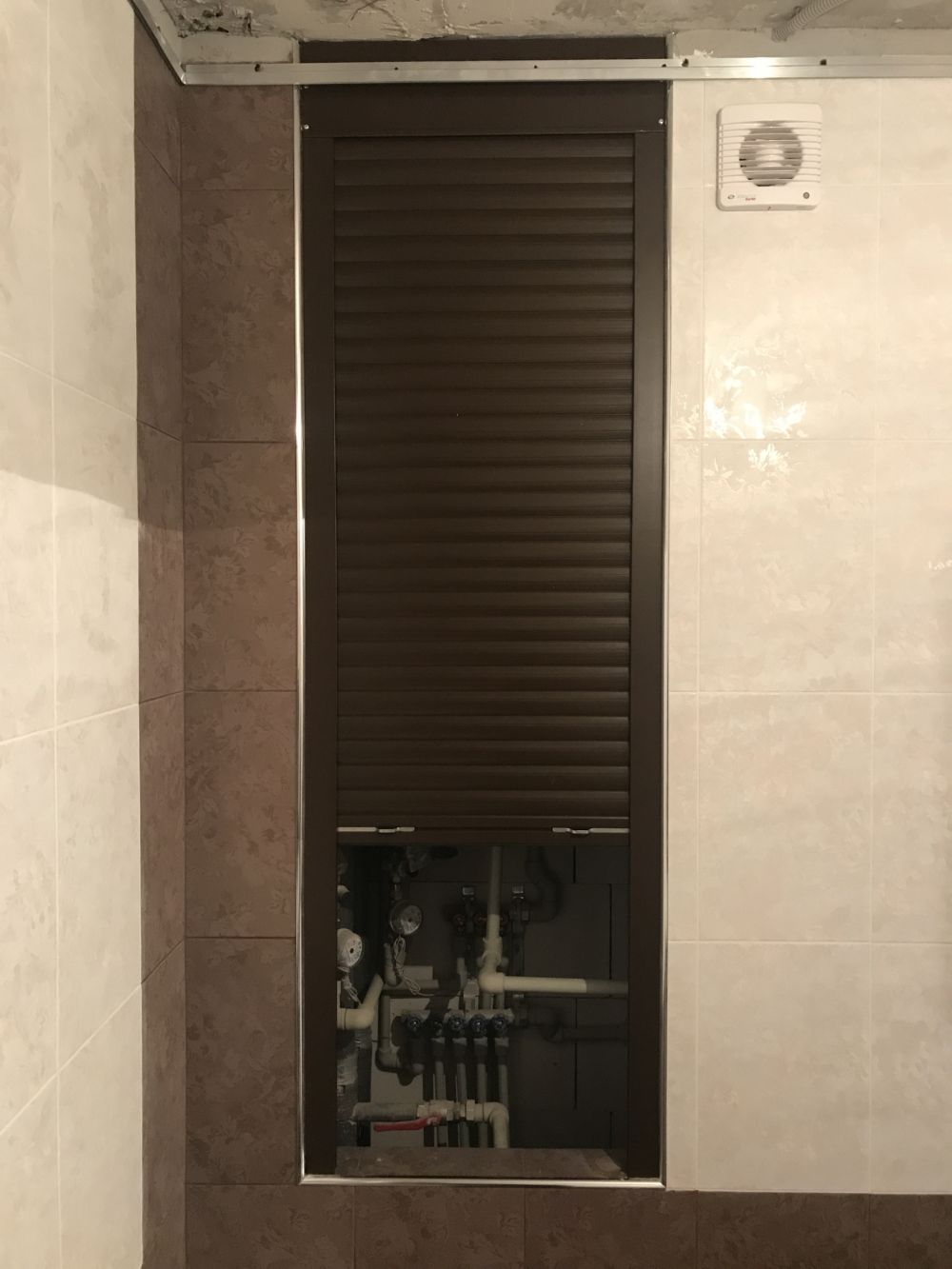 Panjurların yardımıyla sayaçları ve bir su ısıtıcısını bir nişe gizleyebilir, küçük şeyler için göze çarpmayan raflar yerleştirebilirsiniz.