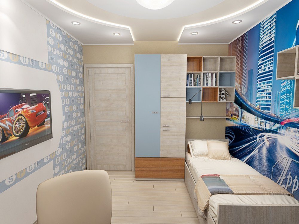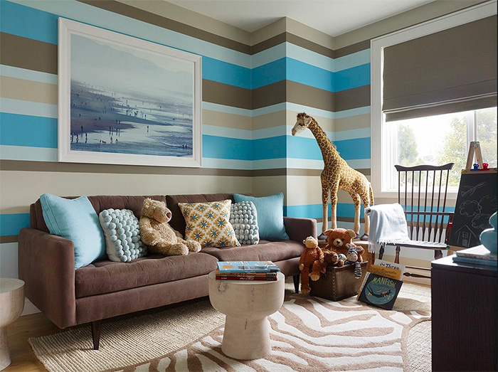 Trong trang trí phòng cho bé, màu sắc cổ điển của đàn ông được sử dụng - kết hợp màu xanh, xanh hoặc trung tính - màu be và nâu, xám và vàng.