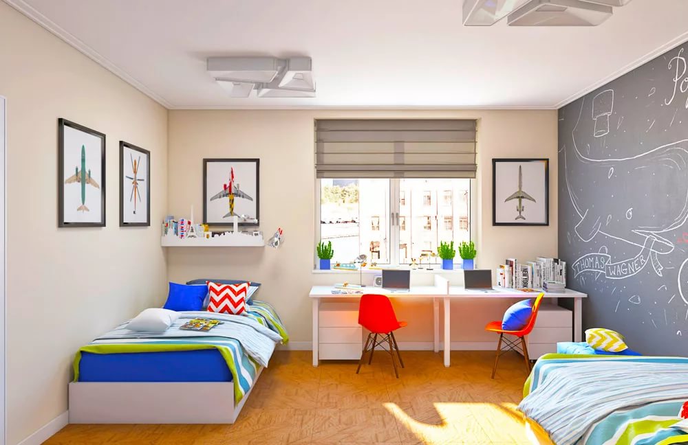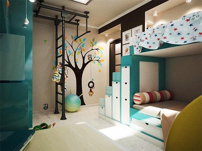 - Kết thúc theo chủ đề là món quà tốt nhất. Và nếu bạn có hai con, thì việc lựa chọn các chủ đề để trang trí trong tương lai sẽ làm hài lòng bạn. Chúng tôi sẽ phải tổ chức các cuộc thi, tìm kiếm một người chiến thắng. Hãy tìm một chiếc giường tầng trong một cửa hàng đồ nội thất. Hình dạng đầy màu sắc, giải pháp thiết kế sẽ làm hài lòng con bạn.