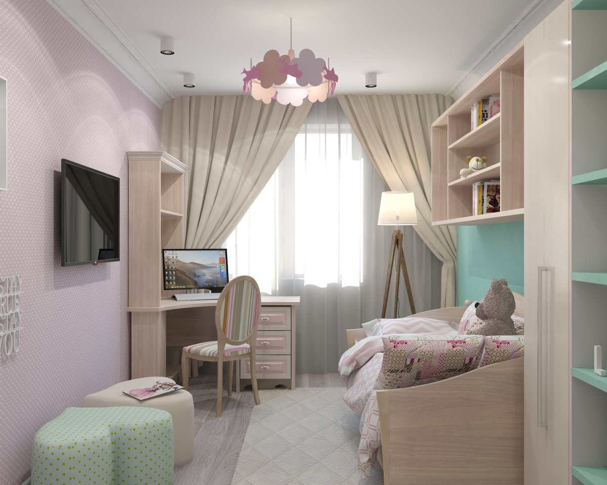 Nếu gia đình có hai con trở lên, hãy chắc chắn đồng ý với từng phiên bản trang trí trong tương lai. Kích thước của căn phòng 14 mét vuông cho phép sử dụng bất kỳ phương pháp phân vùng nào. Bạn có thể áp dụng: