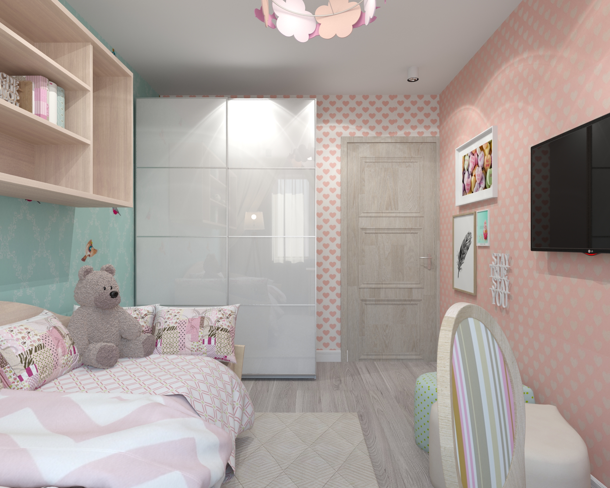 Nếu một công chúa được sinh ra trong gia đình của bạn, thì nên trang trí phòng hơn: