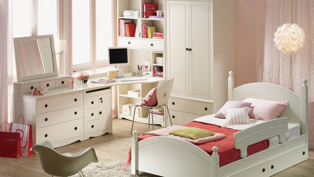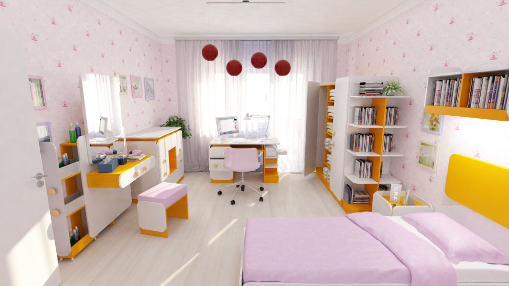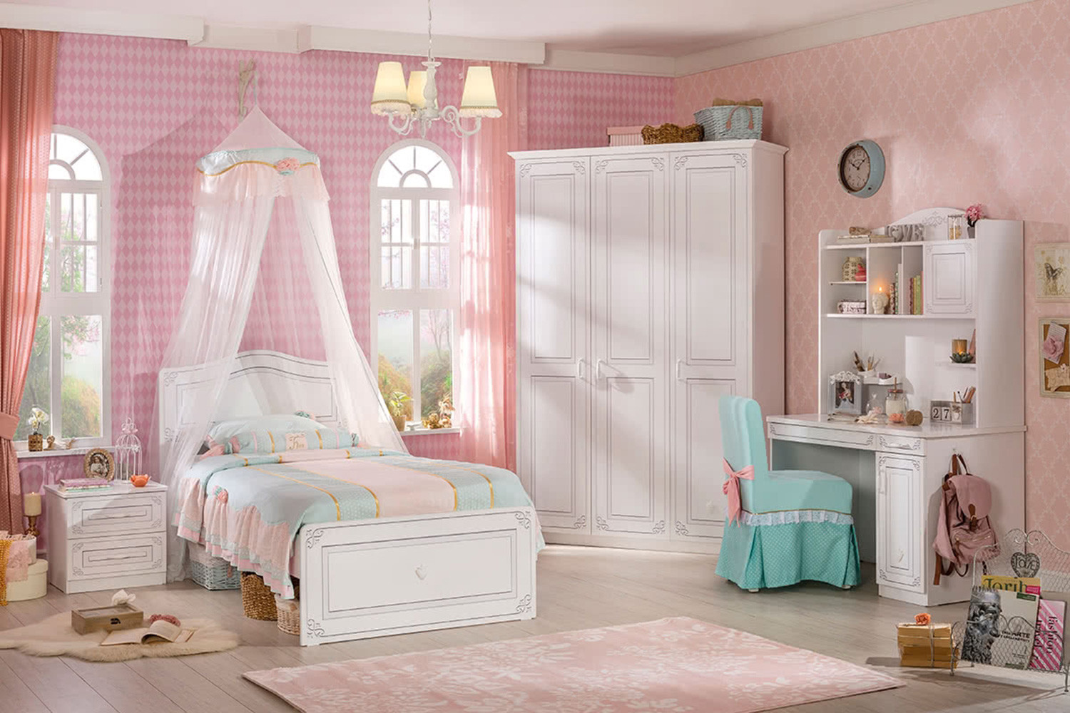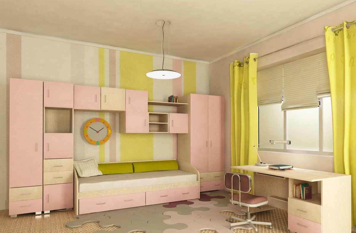 Bộ phòng ngủ của trẻ em cho bé gái nên được làm bằng màu pastel với tông màu hồng đào hoặc màu be dễ chịu. Chúng không chỉ bao gồm một chiếc giường và tủ quần áo, mà còn có một bàn làm việc, nhiều bàn và kệ đầu giường sẽ giúp sắp xếp mọi thứ bạn cần và bổ sung cho nội thất với các yếu tố cần thiết.
