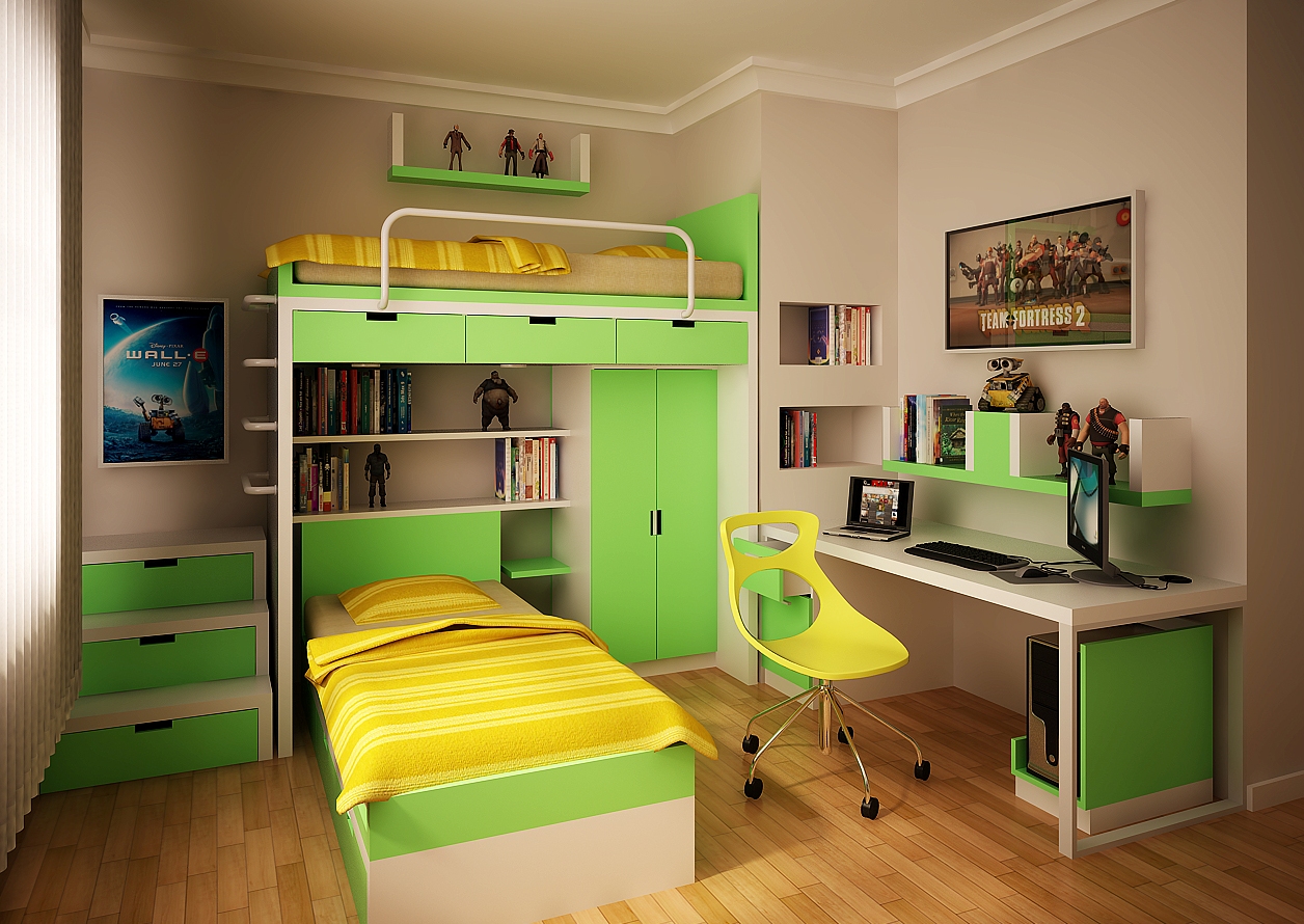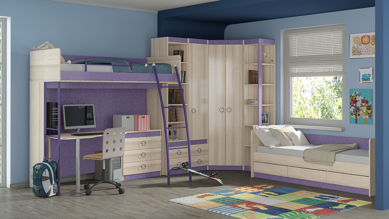 Đối với trẻ em dị tính cần phải suy nghĩ về tủ khóa và giường. Chúng nên được tách biệt để không gây ra cãi vã và phân chia không gian. Ngoài ra, nó sẽ có chức năng nhất có thể. Nếu không gian không đủ rộng, bạn nên chú ý đến tủ góc và giường tầng.