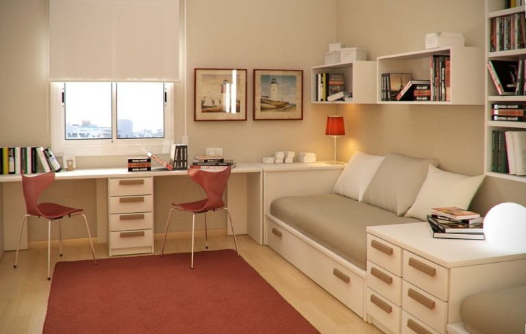 - Nếu căn phòng nhỏ, thì bạn nên quản lý không gian hợp lý, cố gắng kết hợp chức năng của một số sản phẩm trong một đối tượng.