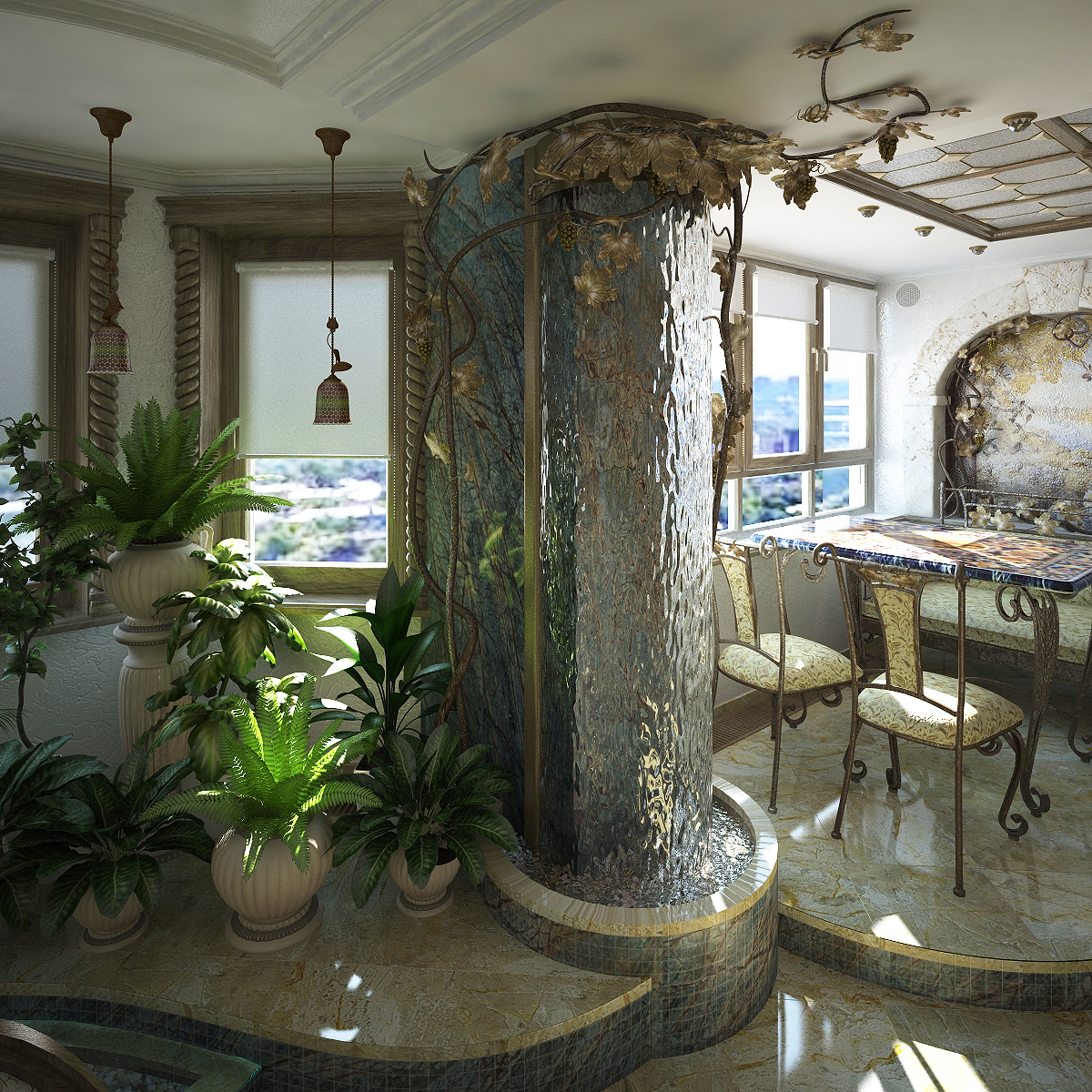 - Tùy chọn để trang trí một căn hộ với đài phun nước trang trí