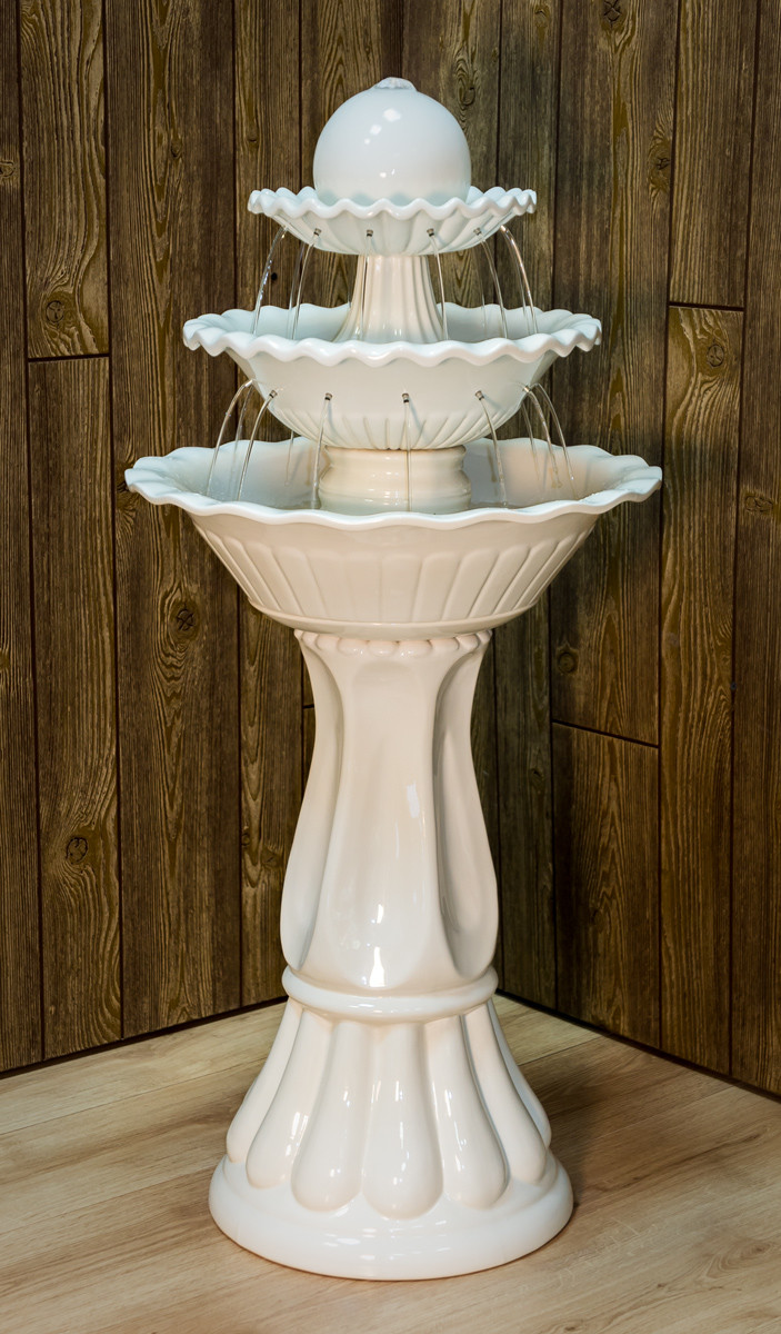 Gốm, như một quy luật, là một số vật thể rắn: vỏ, kim tự tháp, một nhóm bình. Vì gốm là vật liệu tự nhiên và không nhân tạo, nên một đài phun nước như vậy trông phong phú và thân thiện với môi trường hơn. Do sự đơn giản của các hình thức của nó, các sản phẩm gốm phù hợp cho cả phòng ngủ và phòng khách, cũng như cho nhà bếp và không gian văn phòng.