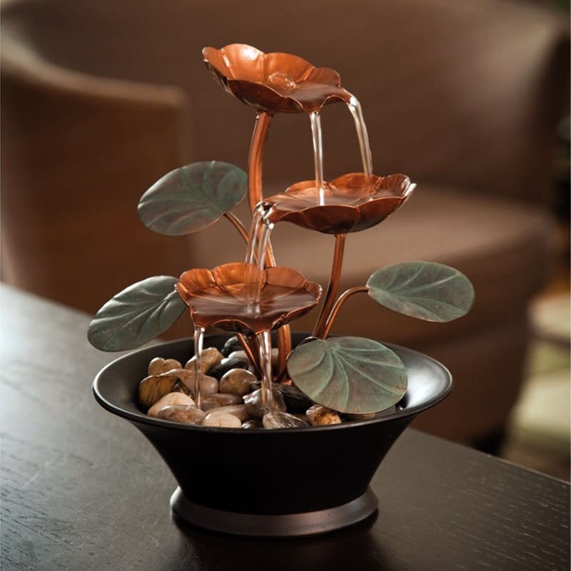 Đài phun nước thời trang làm bằng các yếu tố đồng phù hợp cho một căn phòng theo phong cách hiện đại