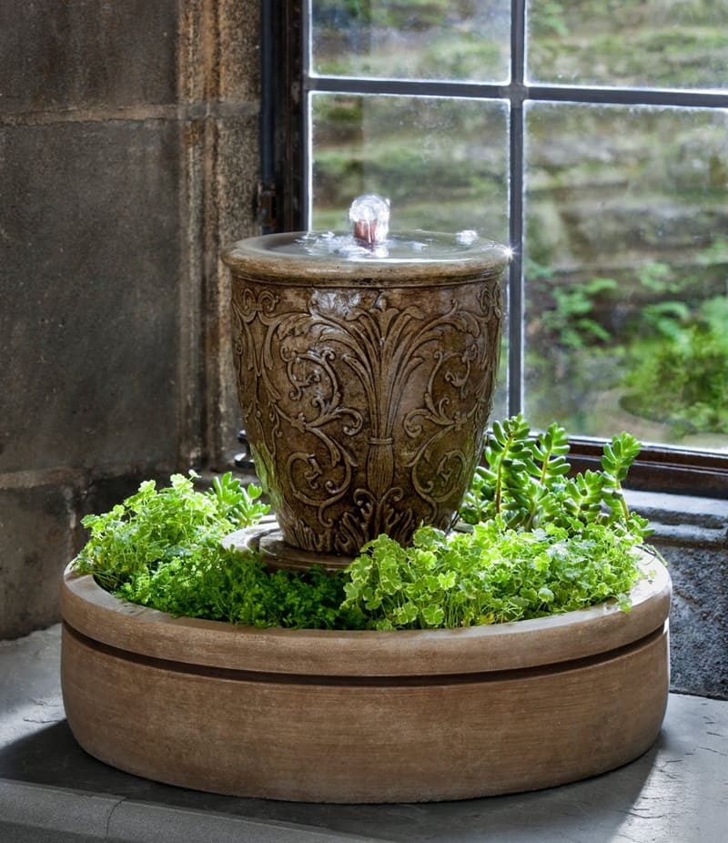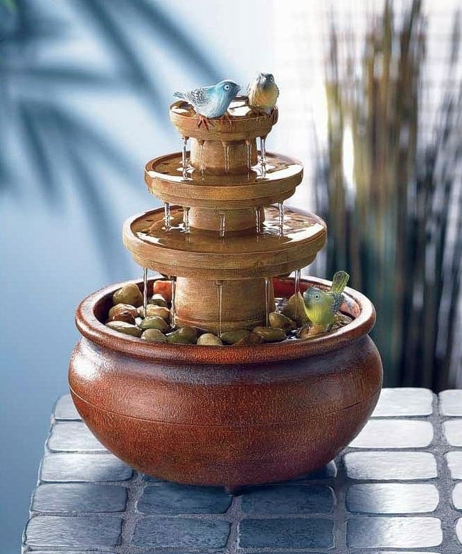 Đài phun nước nhỏ gọn - thực tế nó là một bể chứa nước được trang bị một máy bơm và được trang trí theo hình thức trang trí