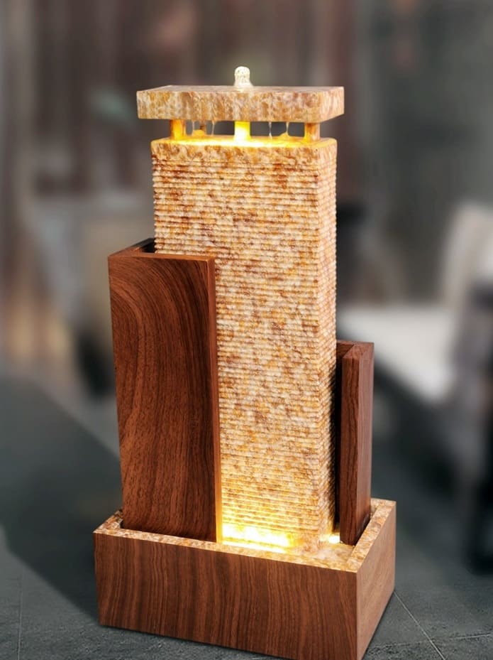 Đài phun nước trong nhà có thể được làm từ cả vật liệu nhân tạo và tự nhiên