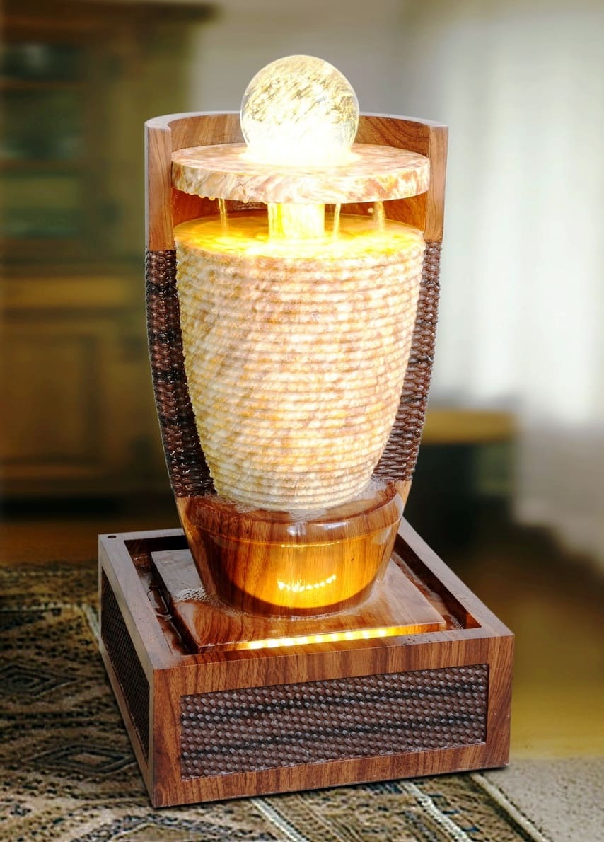 Nước trong đài phun nước liên tục di chuyển, và điều này làm cho năng lượng lưu thông tích cực hơn. Nếu cần thiết để hồi sinh bất kỳ khu vực hoặc góc tối nào - thì vật phẩm trang trí này có thể được đặt ở đó. Năng lượng sẽ tích tụ trong một vòng tròn mới, và nó sẽ lấp lánh với những màu sắc mới.