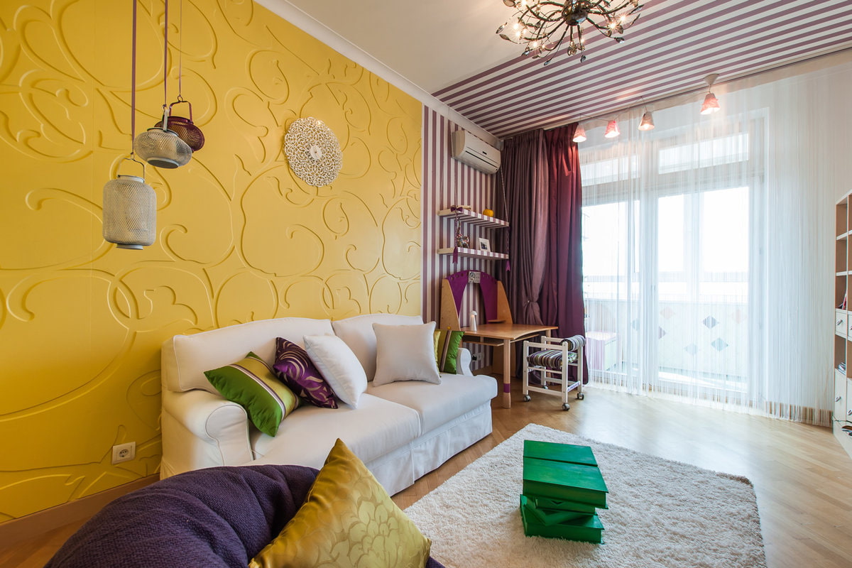 - Màu sắc tươi sáng trong trang trí các bức tường được sử dụng tốt nhất khi có một cửa sổ lớn cho phép ánh sáng mặt trời tối đa.