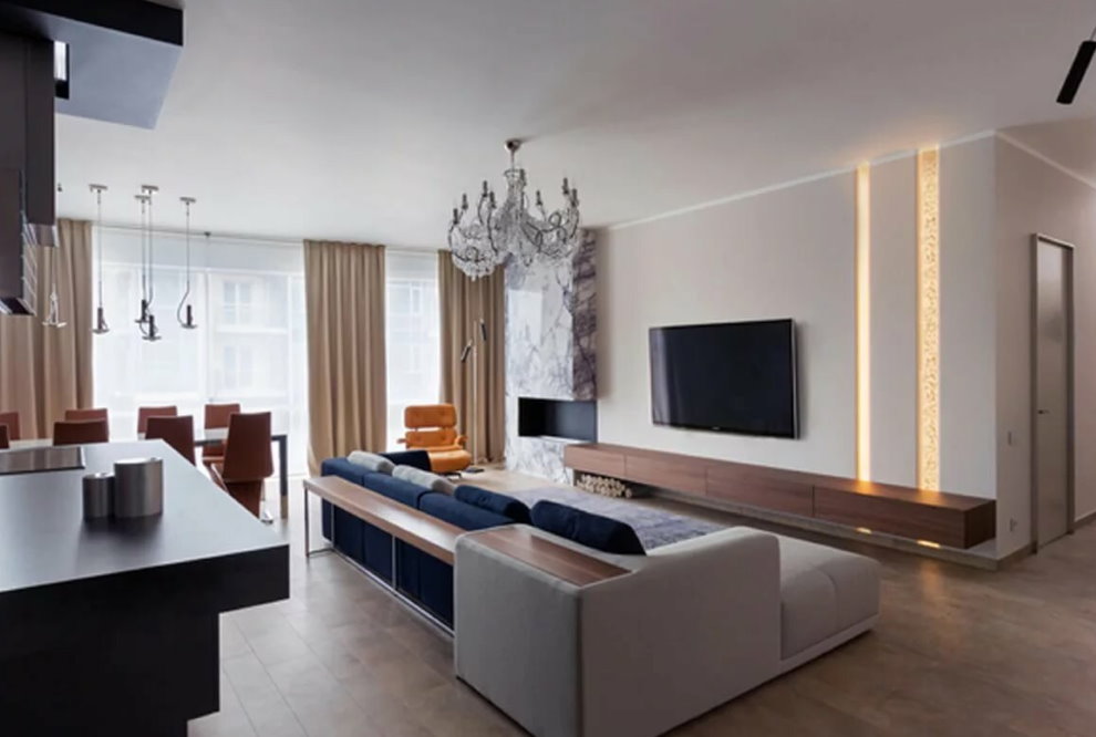 Nếu bạn muốn kết hợp các không gian, thì hãy chắc chắn rằng khi mua một căn hộ, nhà bếp và phòng khách có một bức tường liền kề chung, không được làm dưới dạng một bức tường thủ đô.