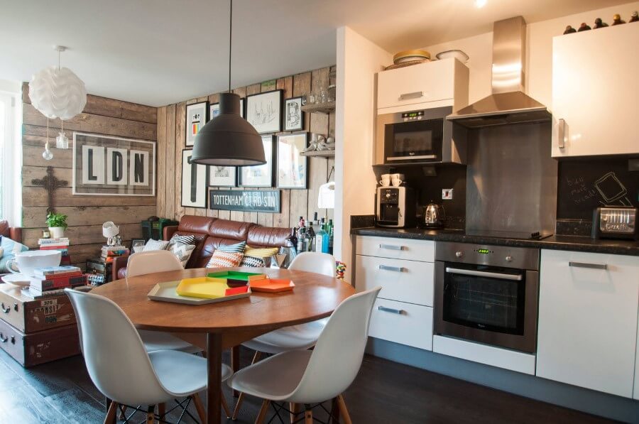 Việc trang trí phải phù hợp với phong cách nội thất của phòng khách nhà bếp. Ví dụ, áp phích hoặc áp phích sẽ thích hợp trong một gác xép.
