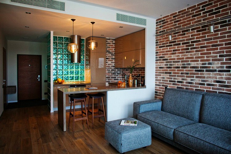 Trong trường hợp này, ghế sofa thường được kết hợp với một quầy bar.