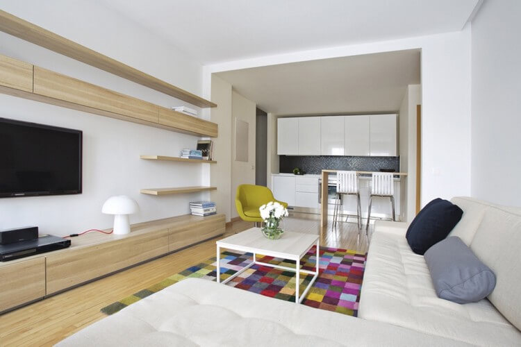 - Không gian đơn. Trái ngược hoàn toàn với đoạn trước. Tại đây bạn có thể nấu ăn, xem chương trình truyền hình yêu thích của bạn.